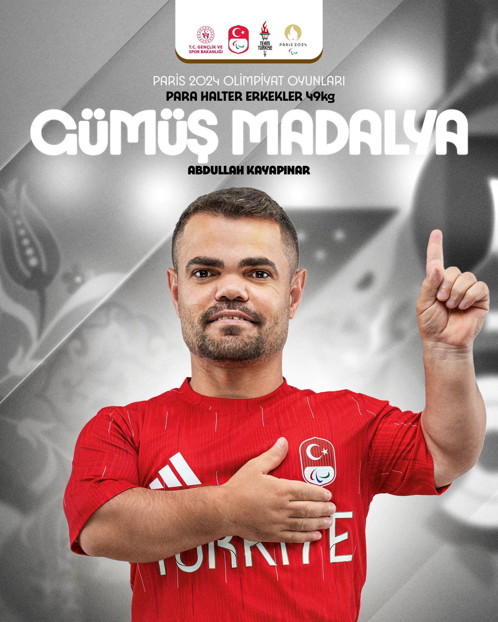 Milli para haltercimiz Abdullah Kayapınar, Paris 2024 Paralimpik Oyunları'nda kazandığı gümüş madalya ile Türkiye'nin Paralimpik Oyunlar tarihinde madalya kazanan ilk erkek haltercisi oldu. Kayapınar, bu tarihi başarıyla adını Türk spor tarihine yazdırırken, elde ettiği madalya büyük gurur kaynağı oldu.