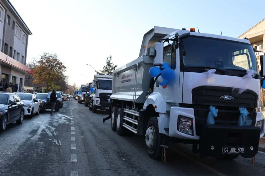 Ağrı Belediyesi Yeni Hizmet Araçlarını Konvoy Eşliğinde Kentte Tanıtarak Hizmet Kapasitesini Genişletti