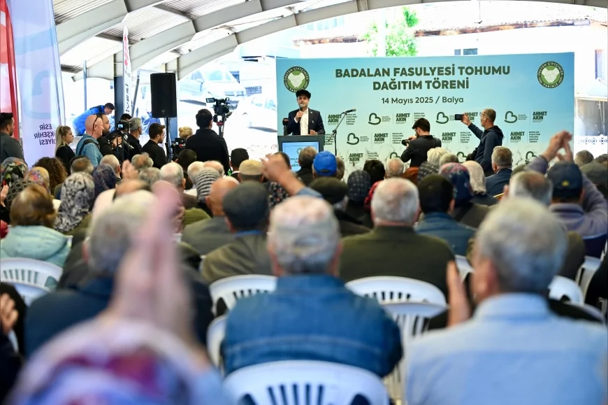 Balıkesir Büyükşehir Belediye Başkanı Ahmet Akın, 14 Mayıs Dünya Çiftçiler Günü’nde Balya ilçesinde üreticilere Badalan fasulyesi tohumu dağıttı. Bu destek, Büyükşehir Belediyesi tarafından ilk defa yüzde 100 hibeli olarak sağlandı. Sınırlı Sorumlu Dörtyol Köyü Tarımsal Kalkınma Kooperatifi’nin 2025 yılı üretim sezonunda kullanacağı 1.500 kilogram fasulye tohumu çiftçilere teslim edildi.