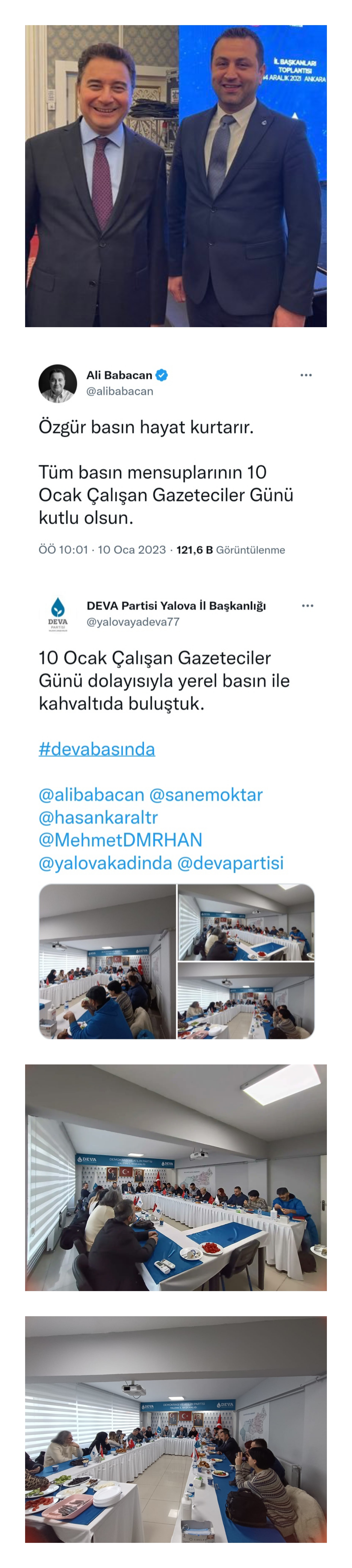 Deva Parisi Genel Başkanı Ali Babacan da resmi sosyal medya hesabından basın emekcileri için bir mesaj paylaştı.