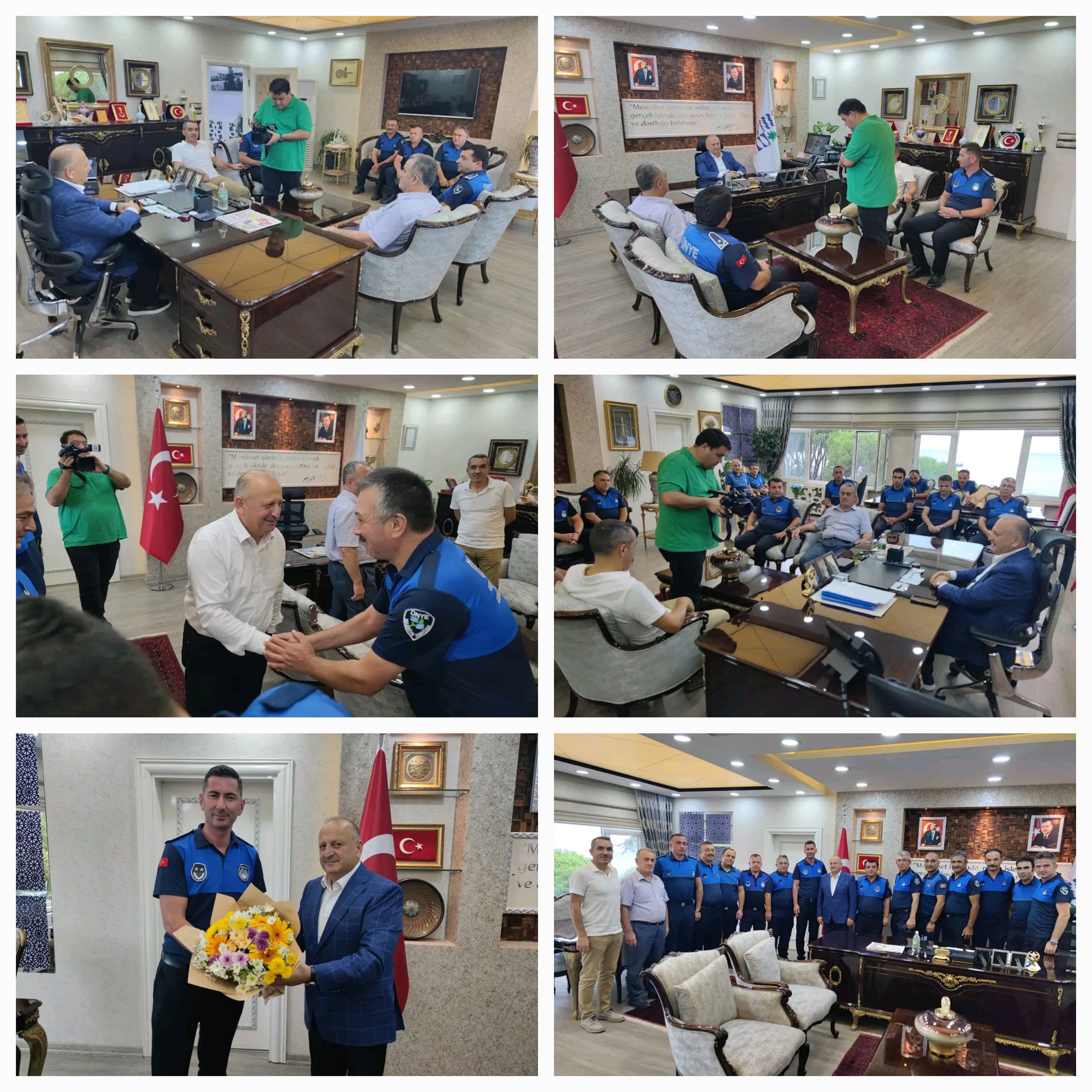 Ünye Belediyesi Zabıta Müdürlüğü, 1-7 Eylül Zabıta Haftası kapsamında Ünye Belediye Başkanı Hüseyin Tavlı’yı ziyaret etti. Belediye Başkan Yardımcıları Orhan Gürel ve Ali Kemal Mehel’in de bulunduğu ziyarette Başkan Tavlı, zabıtalar adına Zabıta Müdür Vekili Serkan Berk’e çiçek takdim etti.