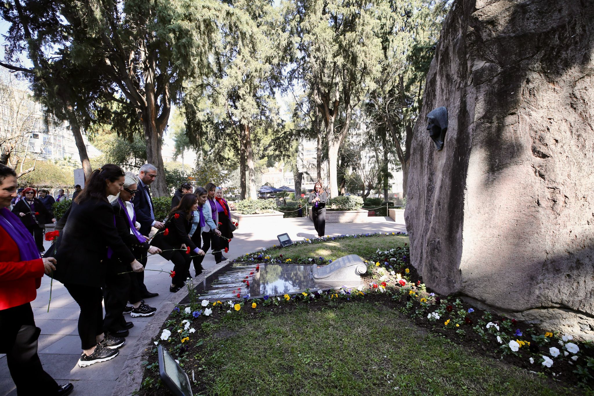 Dünya Emekçi Kadınlar Günü kapsamında gerçekleştirdiği etkinliklerle kadınların gücüne ve eşitlik mücadelesine dikkat çeken Karşıyaka Belediyesi, bugün ilk olarak Zübeyde Hanım Anıt Mezarı’nda tören düzenledi. Belediye Başkanı Yıldız Ünsal, siyasi parti ve sivil toplum örgütlerinin temsilcileri, meclis üyeleri, muhtarlar ve çok sayıda vatandaş, Ulu Önder Atatürk'ün Karşıyaka’ya emanet ettiği annesi Zübeyde Hanım'ı sonsuz saygı ve minnetle andı, kabrine karanfiller bıraktı.