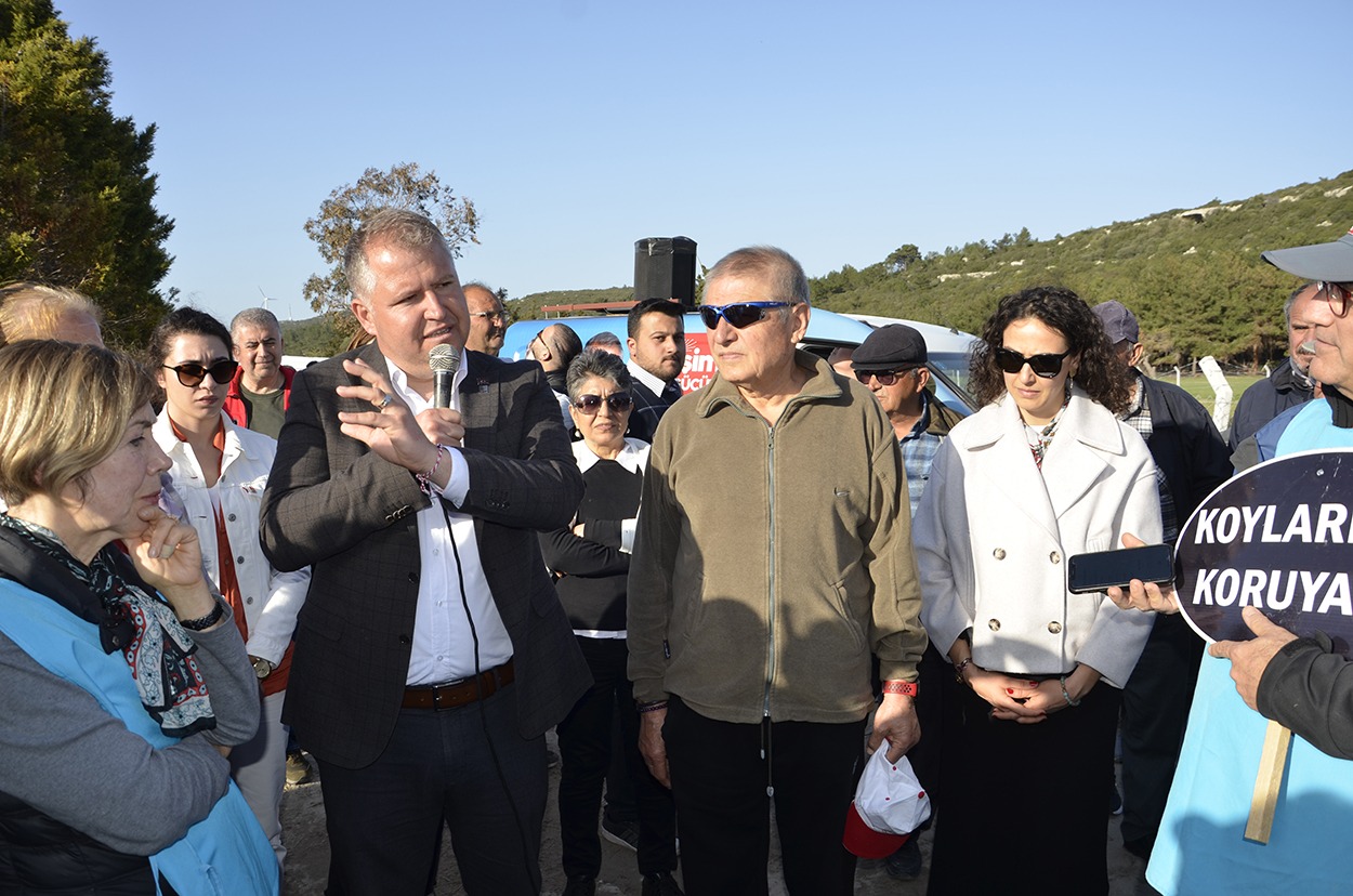 ‘Bugün karşı çıkmak, tepki koymak istediğimiz şey, Altınköy sırtlarında daha önce SİT’ten dolayı iptal olan Jeotermal Kaynak Arama Ruhsatı’nın hemen iki - üç kilometre kaydırılarak tekrar aranmak istenmesidir. Bizim için her şeye karşı çıkıyorlar gibi algı oluşturmak istiyorlar. Biz her şeye karşı çıkmıyoruz. Doğaya, çevreye ve insan sağlığına zarar verecek olan çalışmalara karşı çıkıyoruz. Örneğin biz, Rüzgâr Enerji Santrali yapılmasın demiyoruz. Biz, bir tane Rüzgâr Enerji Santrali yapılırken 1000 tane çam ağacı kesileceğine daha uygun yerlerde, Hollanda gibi denizin ortasında yapılsın diyoruz. Jeotermal kaynağı aranması dediğimiz de ilk karşılaşacağımız durum yeraltı sularının kirlenmesi olacak. Zaten mevcut şartlarla devam edildiğinde ilçemizde 10 yıl sonra her artezyenin başına arıtma cihazı koymak zorunda kalacağız. Bizler doğamızı, çevremizi korumak için mücadele ediyoruz. Jeotermal kaynak arama adı altında ranta ve talana izin vermeyeceğiz’ ifadelerine yer verdi.