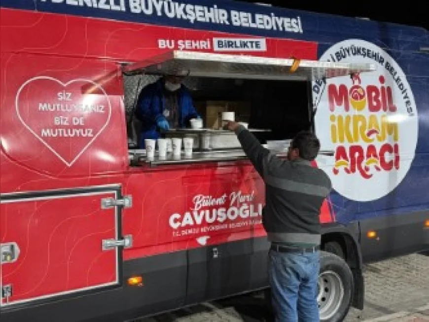 Denizli’nin Buldan ilçesinde meydana gelen 5.1 büyüklüğündeki depremin ardından Yenicekent Mahallesi’nde evlerine giremeyen vatandaşlar için Denizli Büyükşehir Belediyesi mobil ikram araçlarını bölgeye sevk etti. Gece boyunca sıcak yemek ve içecek dağıtımı yapan ekipler, Ramazan ayı nedeniyle sahur saatlerinde de vatandaşlara hizmet sunmayı sürdürdü.