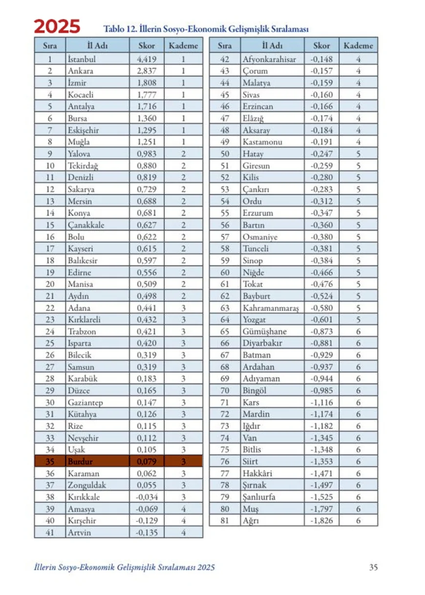 Burdur Belediye Başkanı Ali Orkun Ercengiz, Kalkınma Bakanlığı tarafından açıklanan 2025 yılı İllerin Sosyo-Ekonomik Gelişmişlik Endeksi (SEGE) sonuçlarına ilişkin değerlendirmelerde bulundu. Ercengiz, Burdur’un 2017 yılında 32. sırada yer alırken 2025 itibarıyla 35. sıraya gerilediğini belirtti.