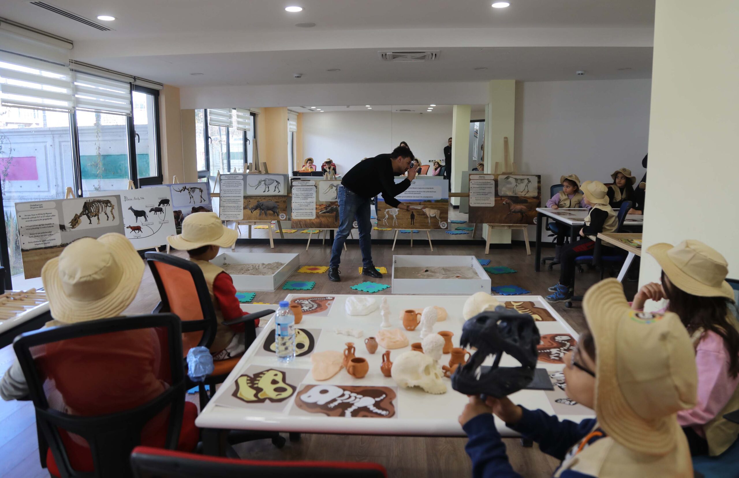 Çocuklar hem insanlık öncesi çağlarla ilgili teorik bilgiler aldı hem de arkeolojik kazı tekniklerini öğrendi.
