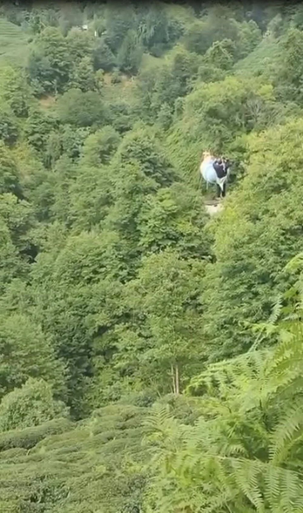 Rize’nin Çayeli ilçesinde, hasat edilen yaş çayların taşınması sırasında kullanılan ilkel teleferik sisteminde arıza meydana geldi. Bu arıza nedeniyle, çay yüklü sepetler metrelerce yükseklikte tellere takılı kaldı.