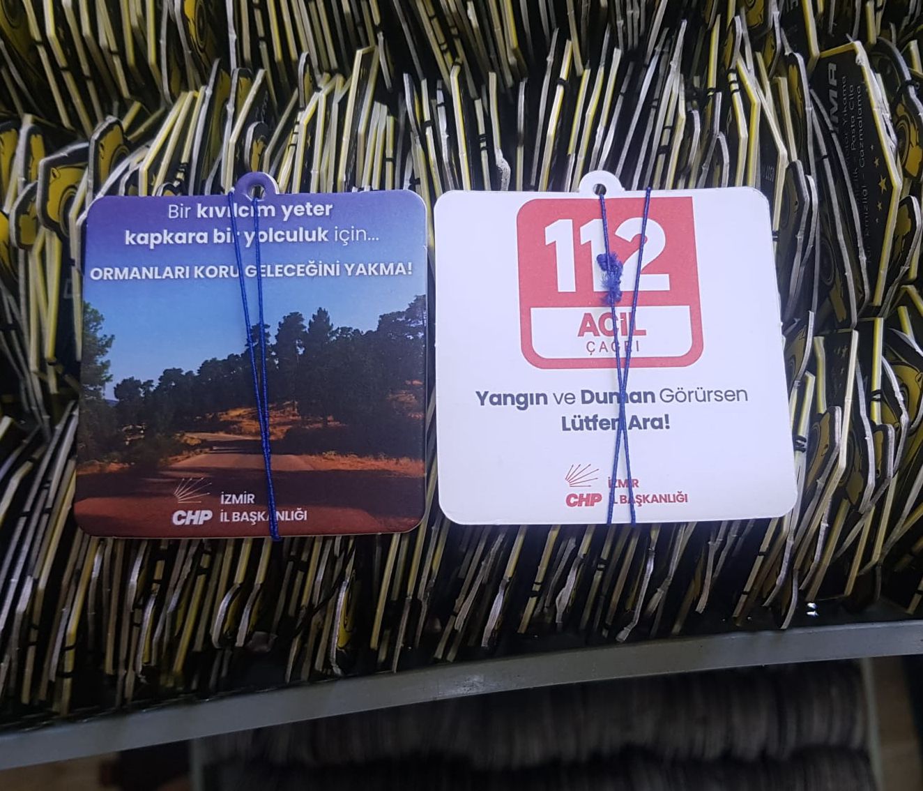 CHP İzmir İl Başkanlığı öncülüğünde yapılan farkındalık çalışmasında Konak, Karşıyaka, Bayraklı, Bornova, Çiğli, Menderes, Bayındır, Tire ve Urla ilçelerinin ana caddelerinde araçlara çam kokulu araç kokuları dağıtıldı.
