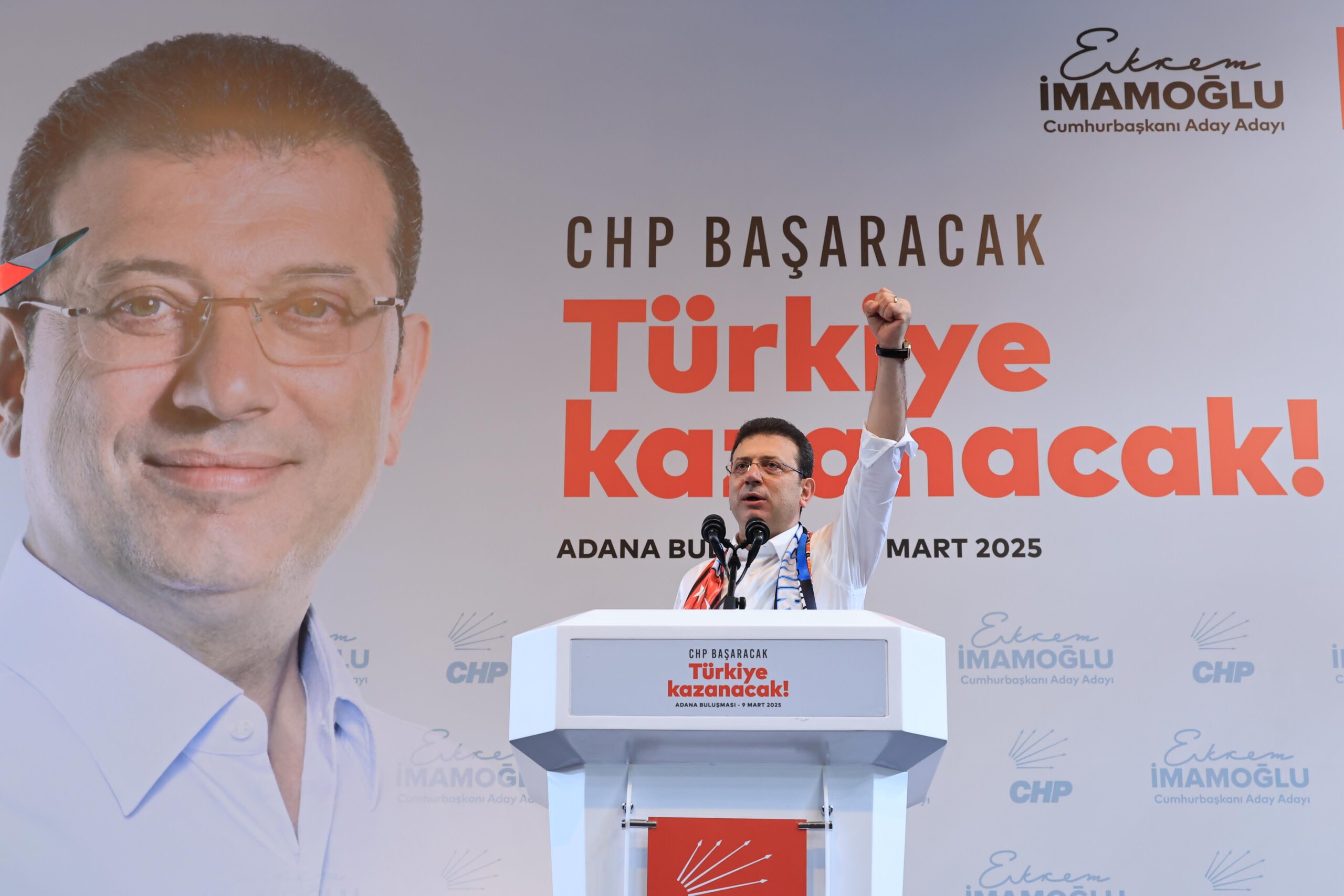 CHP’nin ön seçimle belirlenecek cumhurbaşkanı aday adayı, TBB ve İBB Başkanı Ekrem İmamoğlu, İzmir ve Kayseri’nin ardından büyük yolculuğuna Adana’da devam etti. Adana Buluşması’nda büyük bir coşkuyla karşılanan İmamoğlu, “Vatandaşlarını eşitlikte birleştiren, kurtaran ve bu ülkenin sahibi milleti yapan Atatürk’ün iradesi bize devletin sahibinin millet olduğu gerçeği hatırlatmamızı söylüyor. Bu ülkeyi rayından çıkaran bu anlayışa dur demenizi istiyorum. Devlet, adım adım yok olmaya doğru giderken biz, partisinin emanetini gururla göğsünde taşıyan neferler olarak bu gidişata hep birlikte son vermek zorundayız. Ben bu yolculuğa sırtımı verebileceğim, partime ve benimle her koşulda birlikte mücadele edebilecek yol arkadaşlarıma, sizlere; hepinize güvenmenin gönül rahatlığıyla yola çıkıyorum” dedi.