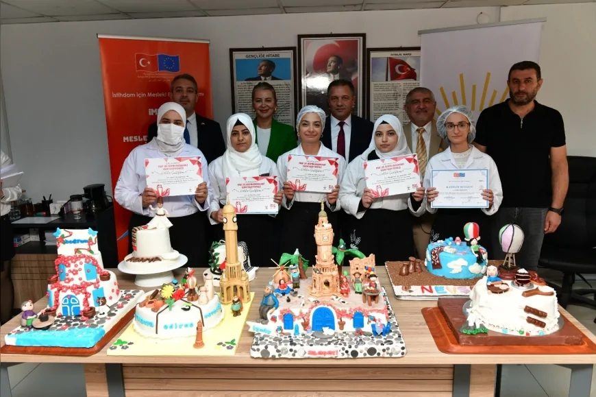 Kadın ve Aile Hizmetleri Müdürlüğü koordinasyonunda yürütülen programda, 4 Ağustos’ta başlayan ve 17 Ekim’de tamamlanan eğitimlere 213 kişi başvurdu. Mülakatla belirlenen 36’sı kadın, 4’ü erkek olmak üzere 40 kursiyer, 300 saatlik uygulamalı pastacılık ve unlu mamuller eğitimini tamamladı. Eğitim sonunda tüm kursiyerler kalfalık belgesi almaya hak kazandı.