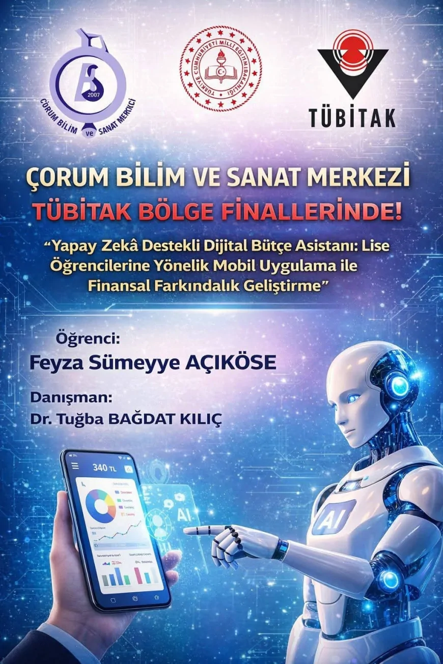 Çorum Bilim ve Sanat Merkezi, TÜBİTAK tarafından düzenlenen Samsun Bölge Finali’nde Sosyoloji ve Biyoloji alanlarında hazırlanan iki farklı projeyle yer alacak. “Bütçe Asistanı Mobil Uygulama” ve “Nörodavranışsal Analiz Sistemi” projeleri, bölge finalinde Çorum’u temsil edecek.