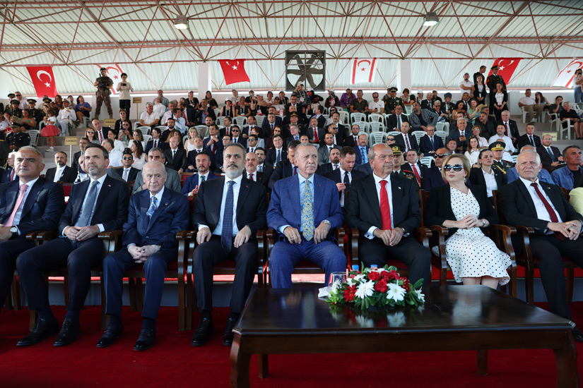 Cumhurbaşkanı Erdoğan, KKTC’de düzenlenen 20 Temmuz Barış ve Özgürlük Bayramı Töreni’nde yaptığı konuşmada, “Türkiye ve Kıbrıs Türkleri, hiçbir zaman müzakereden, uzlaşıdan kaçmamıştır. Zulmü bildiğimiz hâlde, intikam peşinde koşmadık; kin gütmedik. Ada’nın iki unsurunun bir arada barış içinde yaşamasının yollarını samimi şekilde aradık” dedi.