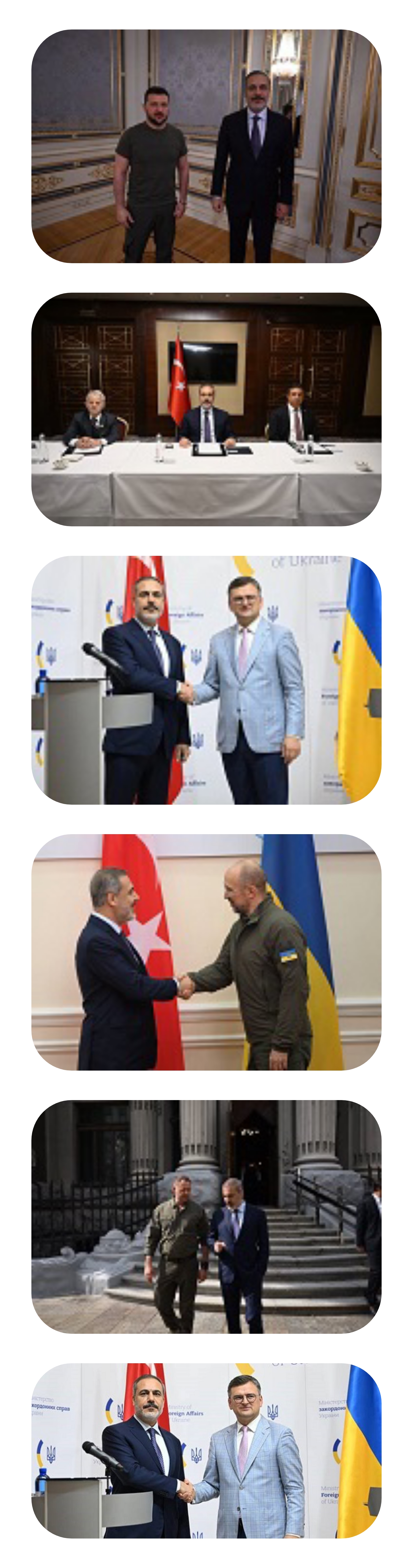Dış İşleri Bakanı Hakan Fidan , temaslarda bulunmak üzere 25 Ağustos 2023 tarihinde Ukrayna’nın başkenti Kiev’i ziyaret etti. Ziyaret kapsamında ilk olarak Kiev’de Ukrayna Devlet Başkanı Volodimir Zelenskiy tarafından kabul edildi. Ardından, Ukrayna Devlet Başkanlığı Ofisi Başkanı Andriy Yermak ile görüştü.