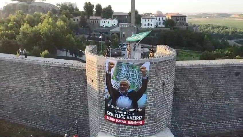 Diyarbakır'da İsmail Haniye'nin Posteri Tarihi Surlara Asıldı