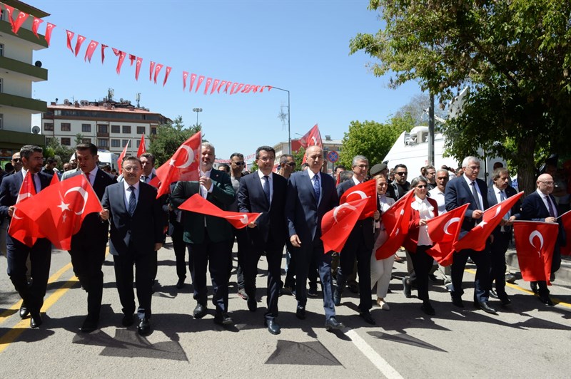 Törenin ardından katılımcılar, atlı ciritçiler eşliğinde ellerinde Türk bayraklarıyla Cumhuriyet Caddesi'nden tarihi Kongre Binası'na kadar kortej yürüyüşü yaptı. Burada devam eden ve Cumhurbaşkanı Recep Tayyip Erdoğan'ın kutlama mesajının okunduğu törende, günün anlamına binaen konuşmalar yapıldı.