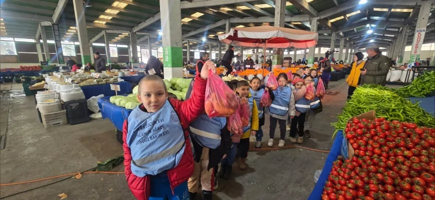 Pazarcı esnafının sıcak ilgisiyle karşılanan çocuklar, merak ettikleri soruları yöneltti. Ürünlerin nasıl yetiştirildiğini dinleyen öğrenciler, üretim süreci hakkında temel bilgiler edindi.