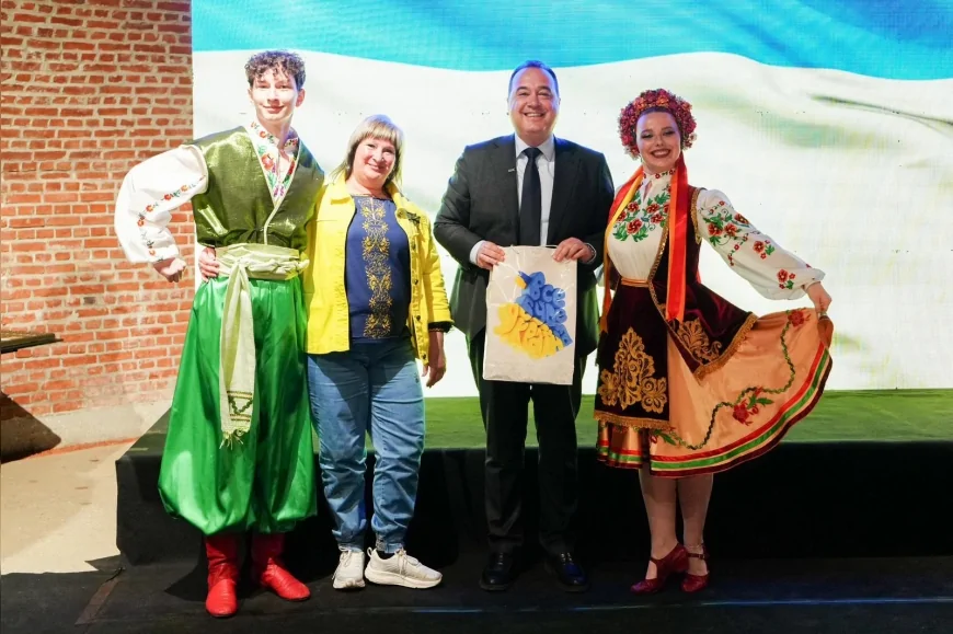 Manisa Büyükşehir Belediye Başkanı Besim Dutlulu, törende halk dansları toplulukları temsilcileriyle bir araya geldi. Başkan Besim Dutlulu, konuklara Manisa’ya özgü armağanlar takdim ederken, program kültürel etkileşimin simge anlarından biri olarak öne çıktı.