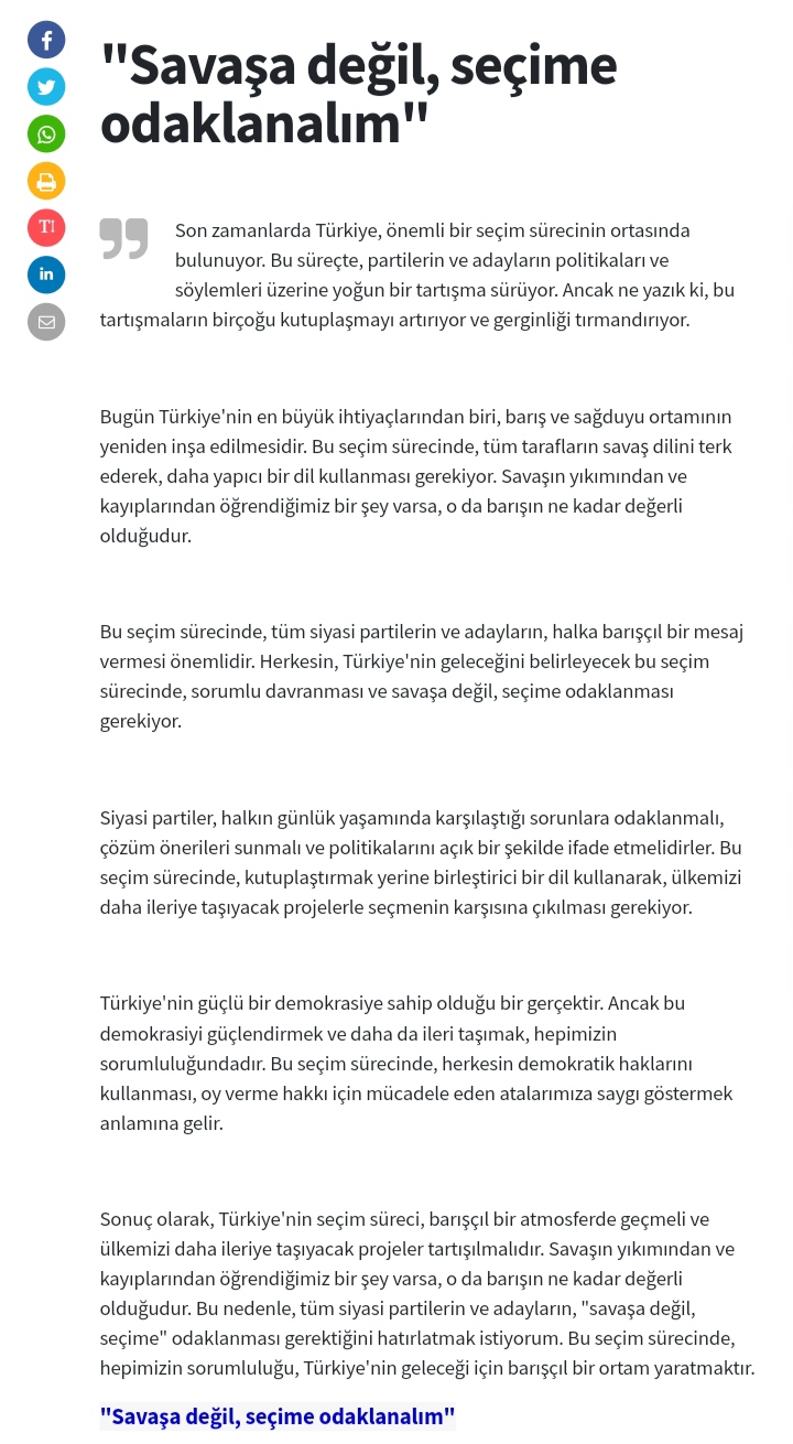 Güven Albayrak Yazdı : Savaşa Değil Secime Odaklanalim