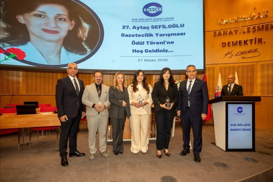 Ege Bölgesi Sanayi Odası tarafından 27’ncisi düzenlenen Aytaç Sefiloğlu Gazetecilik Yarışması’nda ödüller İzmir’de sahiplerini buldu. Törende konuşan İzmir Gazeteciler Cemiyeti Başkanı Dilek Gappi ve EBSO yöneticileri, ekonomi gazeteciliğinin önemi ve mesleğin sorumluluğuna dikkat çekti.
