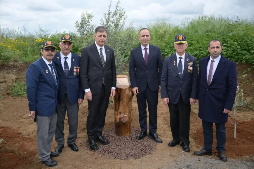 Ziyarette, Dr. Cemil Tugay’ın Kıbrıs gazisi babası Cemal Tugay anısına üç zeytin fidanı dikildi.