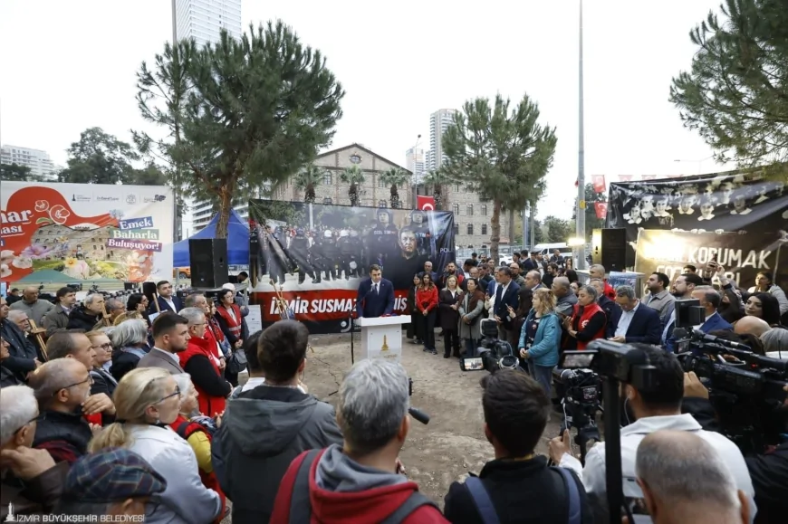 İzmir Büyükşehir Belediye Başkanı Dr. Cemil Tugay, Meslek Fabrikası nöbetinin 11’inci gününde yaptığı açıklamada, Vakıflar Genel Müdürlüğü’nün el koyma kararına tepki gösterdi. Tugay, mücadelenin toplumsal bir meseleye dönüştüğünü vurgulayarak direnişin süreceğini ifade etti.