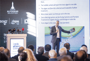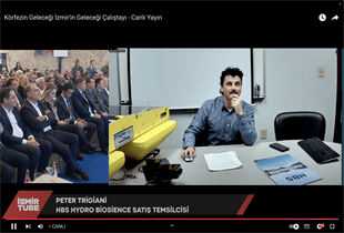 ABD’den online bağlantı ile çalıştaya katılan HBS Hydro BioSience Satış Temsilcisi Peter Trigiani, İzmir Körfezi'nde Ultrasonik Teknolojiyle Siyanobakteri ve Zararlı Alg Patlamalarının Tedavisi hakkında konuştu. İzmir Körfezi'nin fotoğraflarından ve alglerden bir sunum yapan Trigiani, “Ultrason yöntemlerini kullanan bir şirketiz. Ultrasonic ses dalgaları kullanılarak bir takım yöntemler geliştirmekteyiz. Bu noktada alg patlamalarını önlemek adına kullandığımız bir teknoloji. Bu sentez bünyesinde çalışmalarımızı yapıyoruz. Toksinlerin açığa çıkmasını ve yayılmasını önleyebilmek için bir takım önlemlere odaklanmaktayız. İki önemli alg türü İzmir için sahnede. Siyanobakterilerden bahsedebiliriz. Balık ölümlerine sebebiyet verebilir düşük oksijenden dolayı. Siyanobakteriler büyük bir tehdit. Alg patlamalarına sebebiyet verebilecek bir bakteri. Ultrason yöntemi, Siyanobakteriler üzerinde çok etkili. Siyanobakteriler canlı hayatına tehdit oluşturabilecek durum ortaya çıkarır. İzmir Körfezi'nde de bunun oluştuğunu söyleyebiliriz. Siyanobakteriler, özellikle İzmir Körfezi'nde hayatı olumsuz etkiliyor çünkü oksijeni tüketiyor” dedi. Trigiani, bünyelerinde bulunan ultrason teknolojisiyle yüksek maliyetler olmadan farklı frekanslar vererek Körfez’deki kirliliğin çözülebileceğini söyledi.
