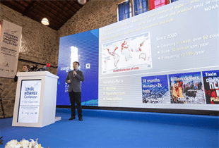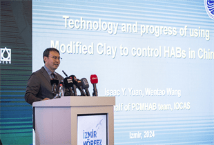“Alg Patlamasında Modifiye Edilmiş Kilin Uygulanması” başlıklı sunum yapan Çin Halk Cumhuriyeti Deniz Ekolojisi ve Çevre Bilimleri Laboratuvarı Uzmanı Dr. Isaac Yongquan Yuan, parametrelerin incelenmesi ve ona göre harekete geçilmesi gerektiğini ifade etti. Çin'de kullandıkları teknolojiler ve kirleticilerin önünün kesilmesi konusuna değinen Yuan, “Buna modifiye edilmiş kil diyoruz. Killeri su yüzeyine yayıyoruz, killer hücrelerle bir araya gelebilecek, onların tabana gitmesini teşvik edecekler. Böylece su yüzeyini etkin bir şekilde 30 dakika içinde temizleyebiliriz. Bu teknoloji bütün Çin sahillerinde uygulanabilir bir teknoloji. Bu sayede yüzlerce kilometrelik bir alan temizlenebildi. Deniz felaketinin de önüne geçilebilmekte. İzmir Körfezi'nde de özellikle tarımsal alanların denize yaklaştığı bölümlerde bu yöntem kullanılabilir. Potansiyel etkinin elde edilebilmesi için, su kalitesinin artırılabilmesi için etkin özellikleri içeren bir teknoloji. ABD ve Şili ile yaptığımız değerlendirmelerde diğer organizmalara herhangi bir zarar verilmediğini söylemek lazım. Bu sadece Çin'de değil çeşitli ülkelerde de uygulanıyor. HUB gerçekten bir felaket olarak karşımıza gelmekte. Orman yangınlarıyla nasıl mücadele ediyorsak bununla da aynı şekilde mücadele edilmesi gerekiyor. Kamudan yetkililer, özel sektörden yetkililerin müşterek çalışma içinde olması gerekiyor. Patlamaların kontrol stratejileri bulunuyor. Diğer ülkelerde kullanılanlar bunlar, Çin'de ve farklı ülkelerde kullanılıyor. Önemli bir potansiyeli var, İzmir şehrine de dahil edilebilmesi mümkün” dedi.
