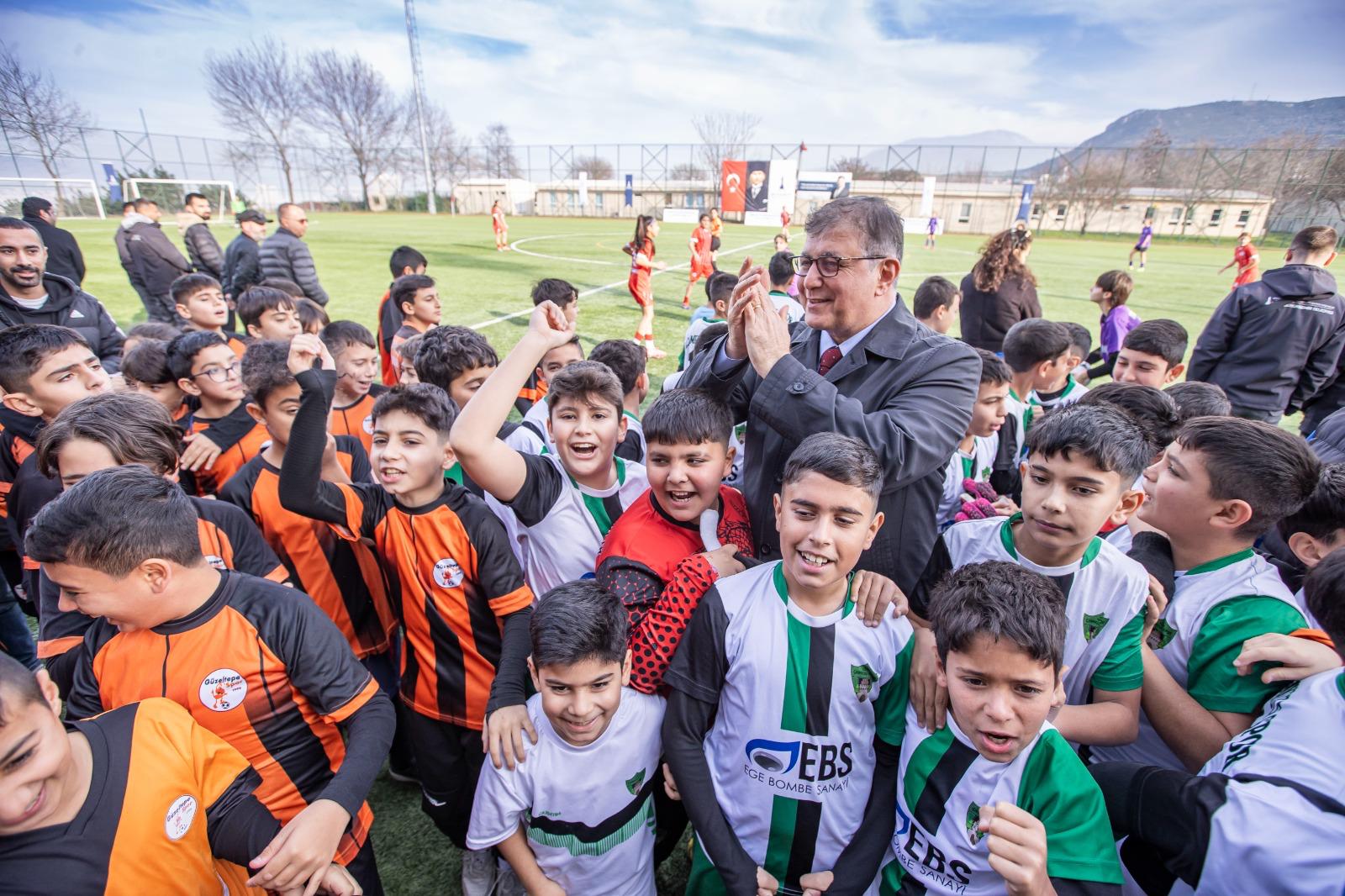 İzmir Büyükşehir Belediyesi’nin “spor kenti İzmir” hedefi için yürüttüğü çalışmalara bir yenisi daha eklendi. İzmir Büyükşehir Belediyesi, U-11 ve U-12 erkek, U-13 ve U-15 kız futbol takımlarının mücadele ettiği liglere isim sponsoru oldu. Amatör spor kulüplerine fazladan malzeme desteği de verilecek. Projenin tanıtım toplantısı, İzmir Büyükşehir Belediye Başkanı Dr. Cemil Tugay’ın ev sahipliğinde Bornova’da yer alan Dr. Behçet Uz Rekreasyon Alanı’nda yapıldı. Programda konuşan Başkan Dr. Cemil Tugay, liglerin başlangıcı için düzenlenen gösteri maçını izledi. Ardından teşekkür plaketi takdim edilen Başkan Tugay, sembolik santra vuruşunu da yaptı.