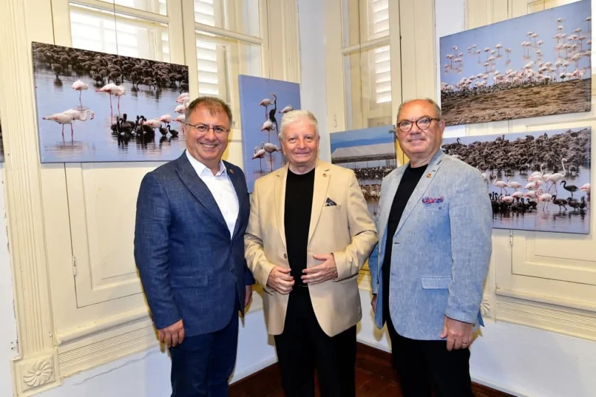 İzmir'de Gazeteci, fotoğraf sanatçısı Esad Erçetingöz ün flamingo adası sergisi sanatseverlerle buluştu.