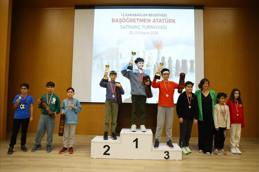 Karabağlar Belediyesi tarafından 24 Kasım Öğretmenler Günü kapsamında düzenlenen Başöğretmen Atatürk Satranç Turnuvası, Yıldız Kenter Kültür ve Sanat Merkezi’nde 12 farklı ilden 95 sporcunun katılımıyla iki gün boyunca sürdü. Açılış hamlesini Karabağlar Belediye Başkanı Helil Kınay’ın yaptığı turnuva, 6 yaş grubunda gerçekleşen müsabakalar, teşekkür konuşmaları ve dereceye giren sporculara verilen madalyalarla tamamlandı.