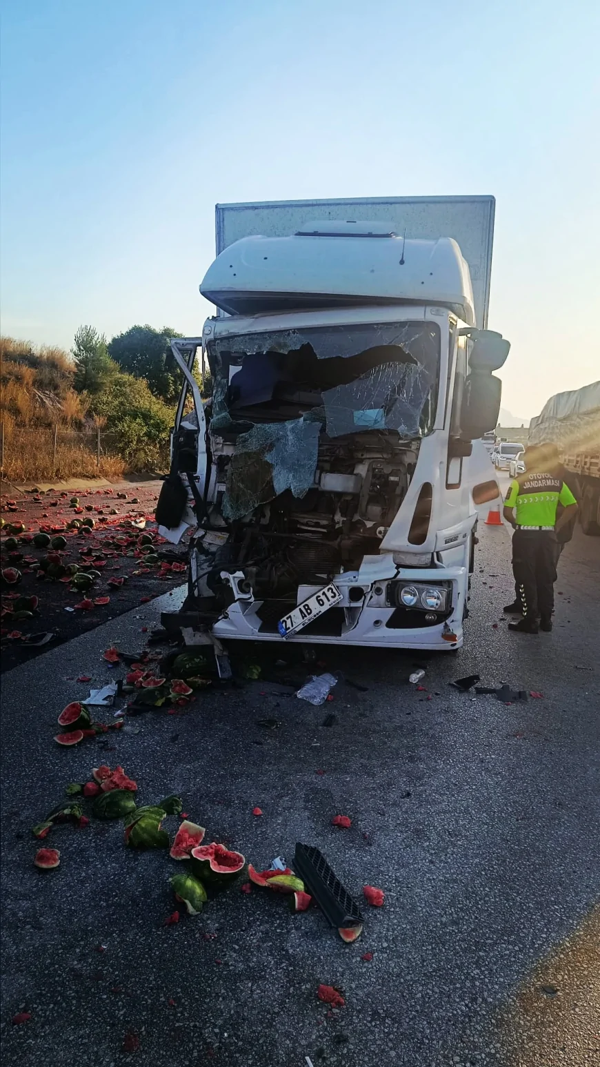 Adana yönünden Osmaniye istikametine seyir halinde olan karpuz yüklü 27 AB 613 plakalı TIR’ın sürücüsü, saat 17:45 sıralarında direksiyon hakimiyetini kaybederek aynı yönde ilerleyen 27 AYC 032 plakalı araca arkadan çarptı. Çarpmanın etkisiyle TIR devrildi karpuzlar etrafa saçıldı.