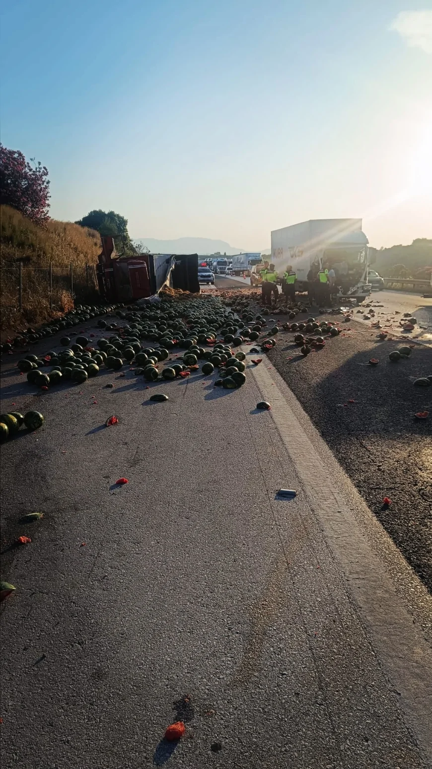 23 Mayıs 2025, Cuma Adana Gaziantep Değirmendere Mevkii TAG Otoyolun'da Karpuz Yüklü Tır Devrildi
