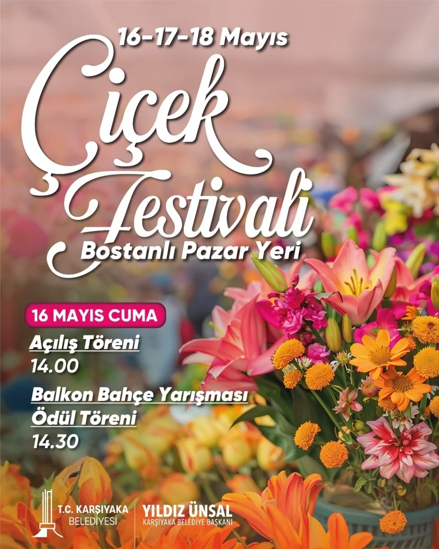 Karşıyaka’nın çevre dostu kimliğiyle özdeşleşen “Çiçek Festivali” bu yıl 22’nci kez düzenleniyor. Karşıyaka Belediyesi organizasyonuyla Bostanlı Pazar Yeri'nde gerçekleştirilecek festival, 16 Mayıs Cuma günü açılacak ve 18 Mayıs akşamına kadar sürecek.