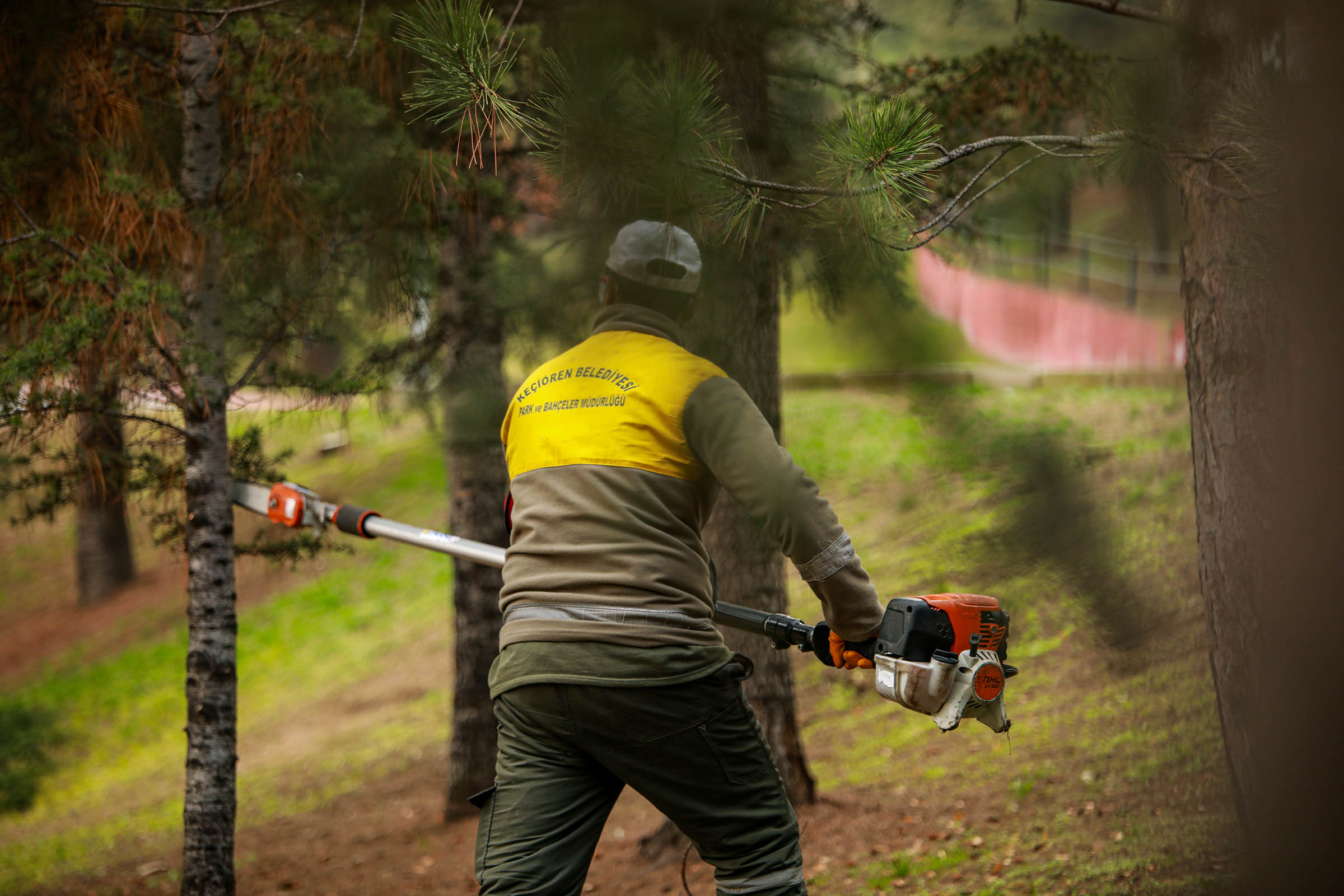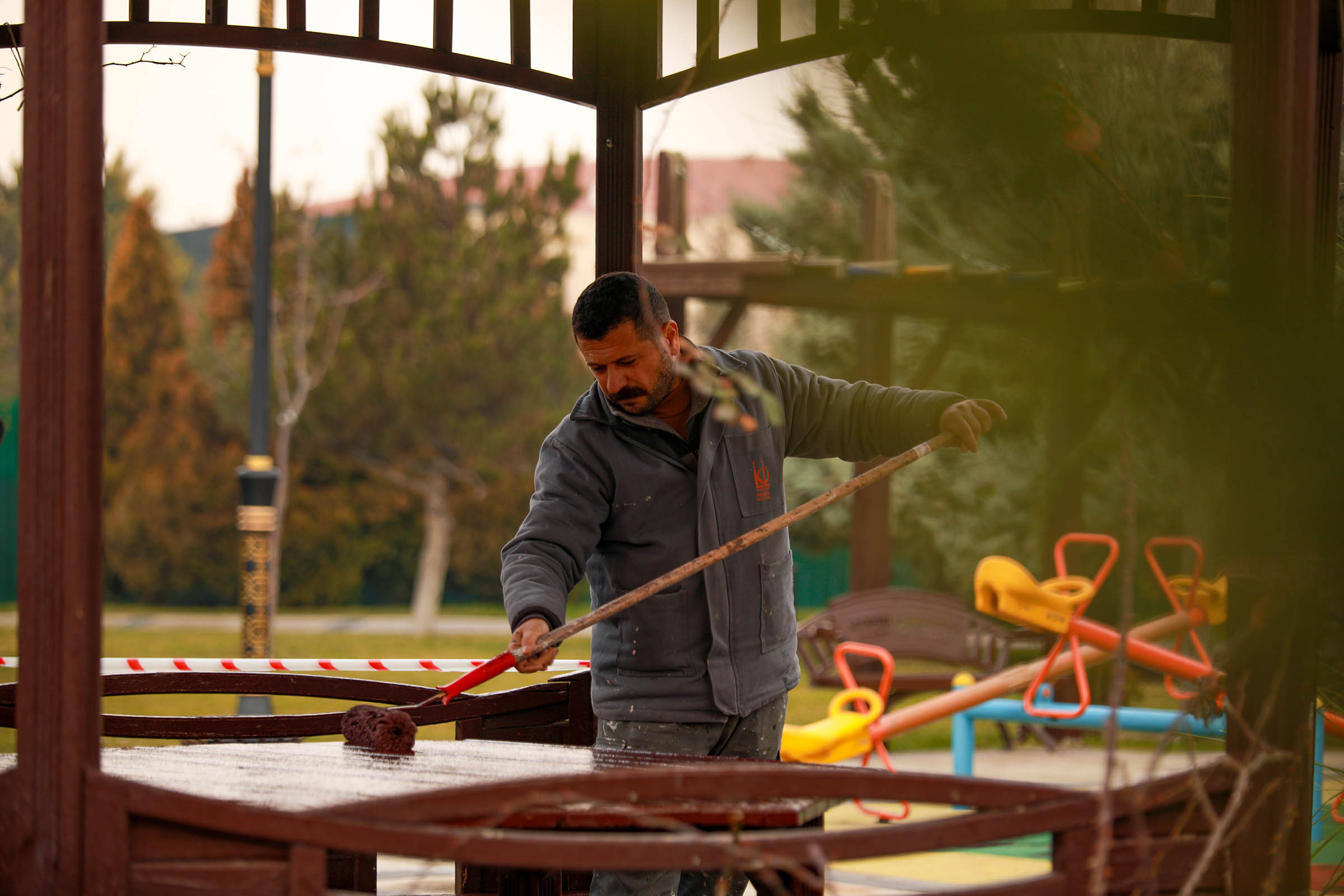 Parkların daha estetik bir görünüme kavuşması için eskiyen alanlar boyanıyor, ağaçlar budanıyor ve sararmış, kurumuş otlar temizleniyor.