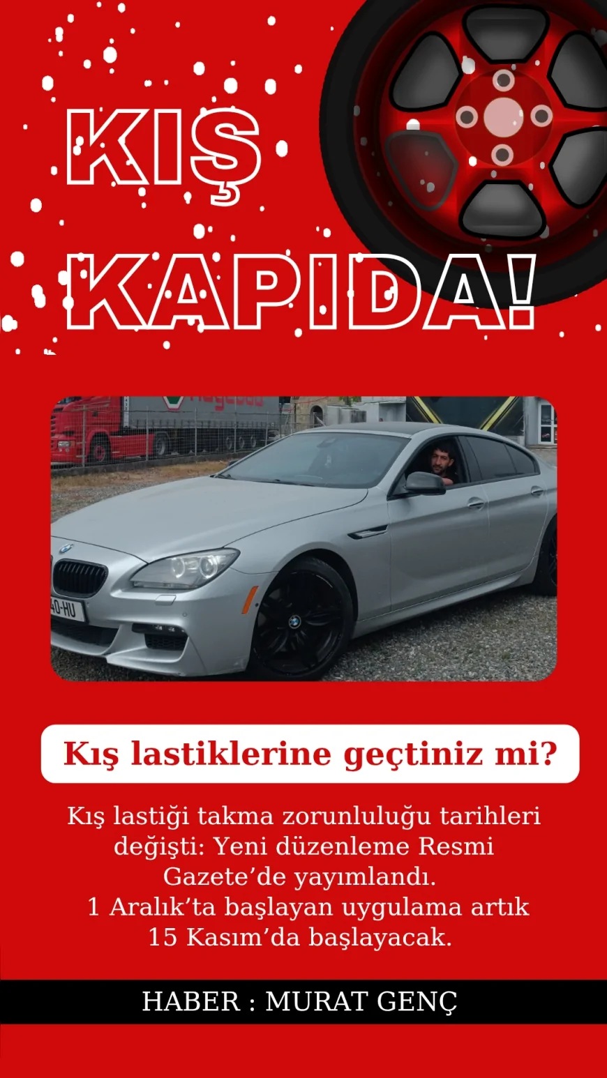 Resmi Gazete’de yayımlanan yeni kararla birlikte zorunlu kış lastiği uygulamasının başlangıç tarihi öne çekildi. Ulaştırma ve Altyapı Bakanlığı tarafından güncellenen tebliğe göre, 1 Aralık’ta başlayan uygulama artık 15 Kasım’da başlayacak. Uymayan araç sahipleri binlerce lira idari para cezası ile karşılaşacak.