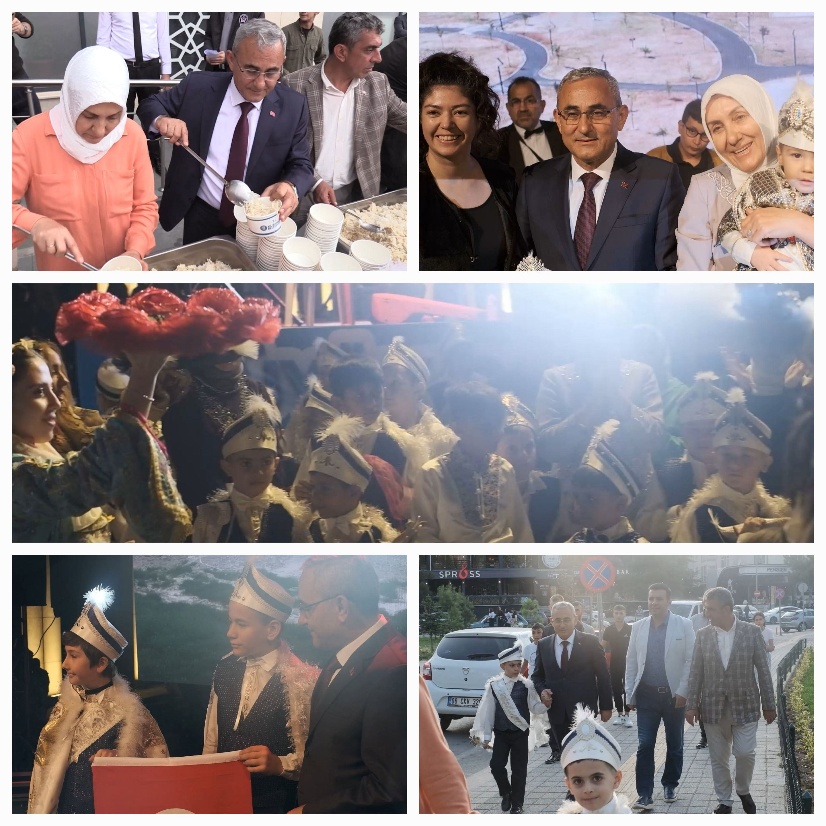 Belediye Başkanımız Prof. Dr. Alim Işık ve eşi Fatma Işık, sünnet çocuklarına kına yaktı ve çocuklara çeşitli hediyeler verdiler. Daha sonra sahneye çıkan Ankaralı Coşkun, seslendirdiği birbirinden güzel oyun havalarıyla hemşehrilerimizi coşturdu.