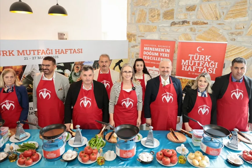 Türk Mutfağı Haftası kapsamında Menemen'de düzenlenen özel etkinlikte, coğrafi işaretli Menemen yemeği tanıtıldı. Siyasiler ve yerel yöneticiler etkinlikte sahneye çıkarak menemen yaptı, vatandaşlar yoğun ilgi gösterdi.