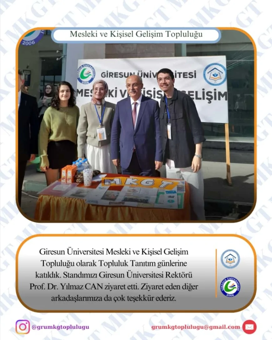 Güne damga vuran topluluklardan biri, gerçekleştirdiği eğitimler ve sosyal projelerle bilinen Giresun Üniversitesi Mesleki ve Kişisel Gelişim Topluluğu (MKGT) oldu. Topluluk üyeleri, standı ziyaret eden öğrencilere yıl boyunca düzenlemeyi planladıkları seminerler, saha çalışmaları ve kişisel gelişim etkinlikleri hakkında ayrıntılı bilgiler verdi. Üniversitenin farklı bölümlerinden çok sayıda öğrenci, topluluğun faaliyetlerine büyük ilgi gösterirken, yoğun kalabalık gün boyunca devam etti.
