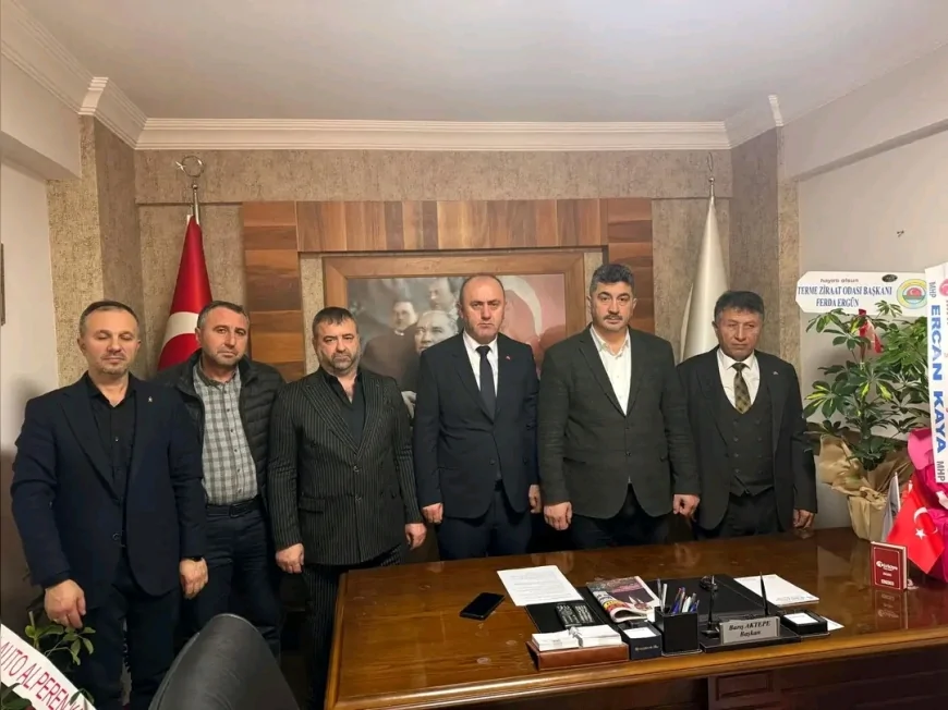 Milliyetçi Hareket Partisi Terme İlçe Başkanı Ercan Kaya ve yönetim kurulu üyeleri, Terme Esnaf ve Sanatkârlar Odası’nı ziyaret ederek yeni yönetime hayırlı olsun dileklerini iletti. Ziyarette birlik, dayanışma ve esnafın ortak sorunlarına yönelik iş birliği vurgusu öne çıktı.