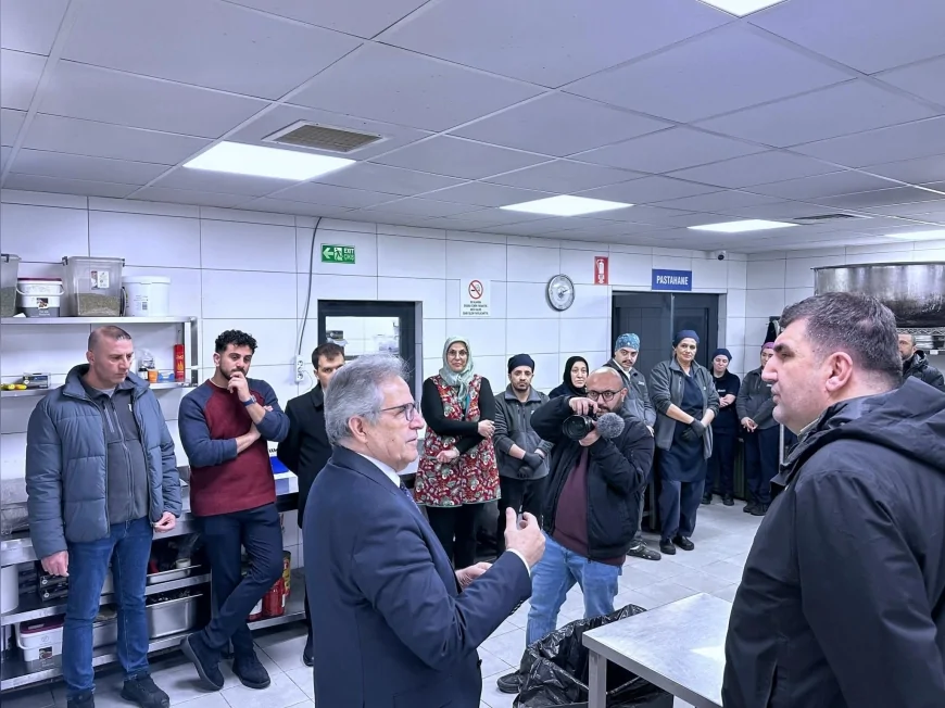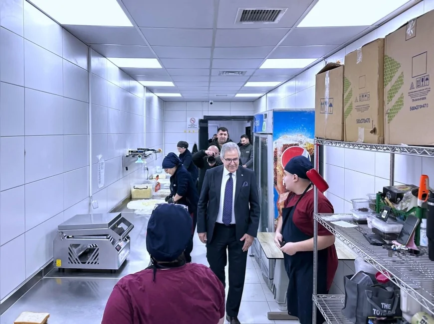 Başkan Dursun Mirza, kent lokantaları, kafeler ve restoranlar ile dışarıya yönelik yemek ve tatlı üretimlerinin gerçekleştirildiği alanları gezerek yetkililerden bilgi aldı. Üretim süreçlerinde hijyenin öncelikli olduğunu vurgulayan Mirza, “Üretimin her aşamasında hijyen standartlarını korumaya büyük önem veriyoruz.” ifadelerini kullandı.