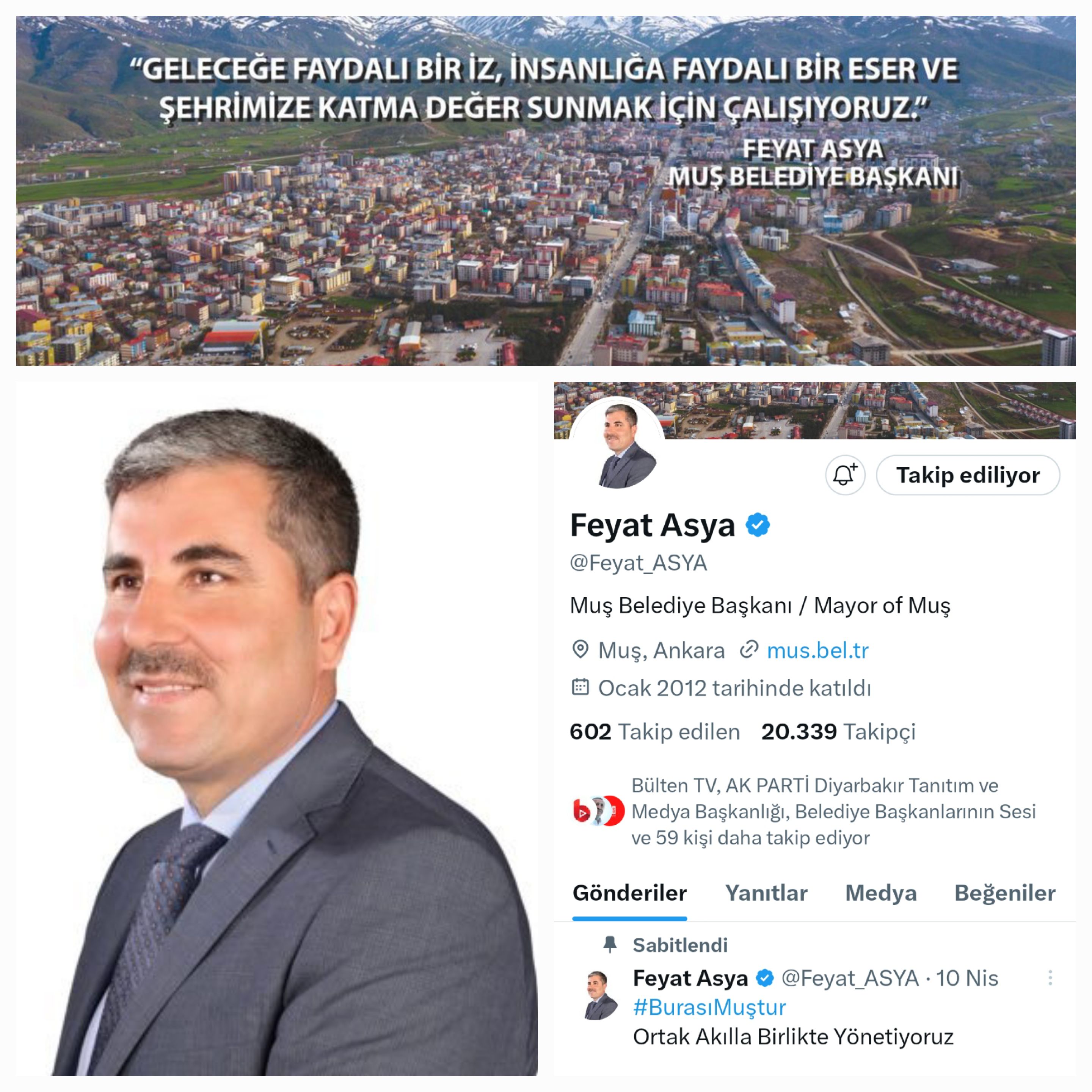 Muş Belediye Başkanı Feyyat Asya resmi sosyal medya hesaplarından yaptığı paylaşımda: