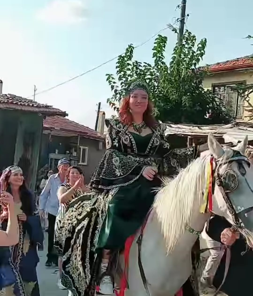 Nallıhan da Köy Düğününde Gelin'in Ata Binerek oğlan evine gitmesi ilgi odağı oldu