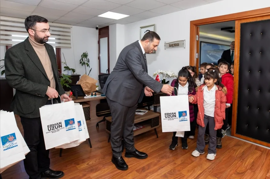 İzmir’in Narlıdere ilçesinde Mustafa Şık İlkokulu 2. sınıf öğrencileri, hayat bilgisi dersinde işledikleri “Yerel Yönetimler” konusunu yerinde öğrenmek amacıyla Narlıdere Belediyesi’ni ziyaret etti. Belediye Başkanı Erman Uzun, makamında ağırladığı öğrencilerin sorularını yanıtladı, belediyenin görevlerini anlattı ve “Geleceğimiz sizlere emanet” mesajı verdi.