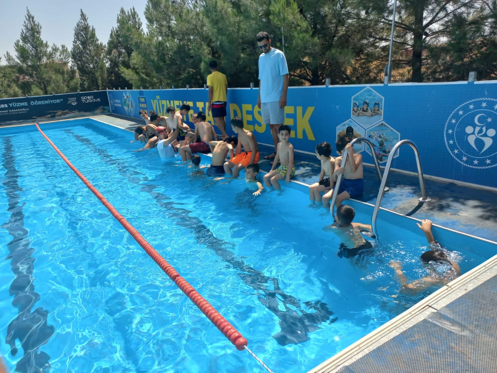 Sabahın erken saatlerinden itibaren Kur’an Kursu’ndaki derslere katılan çocuklar,günün kalan bölümünü yüzme eğitimi alarak değerlendiriyor.