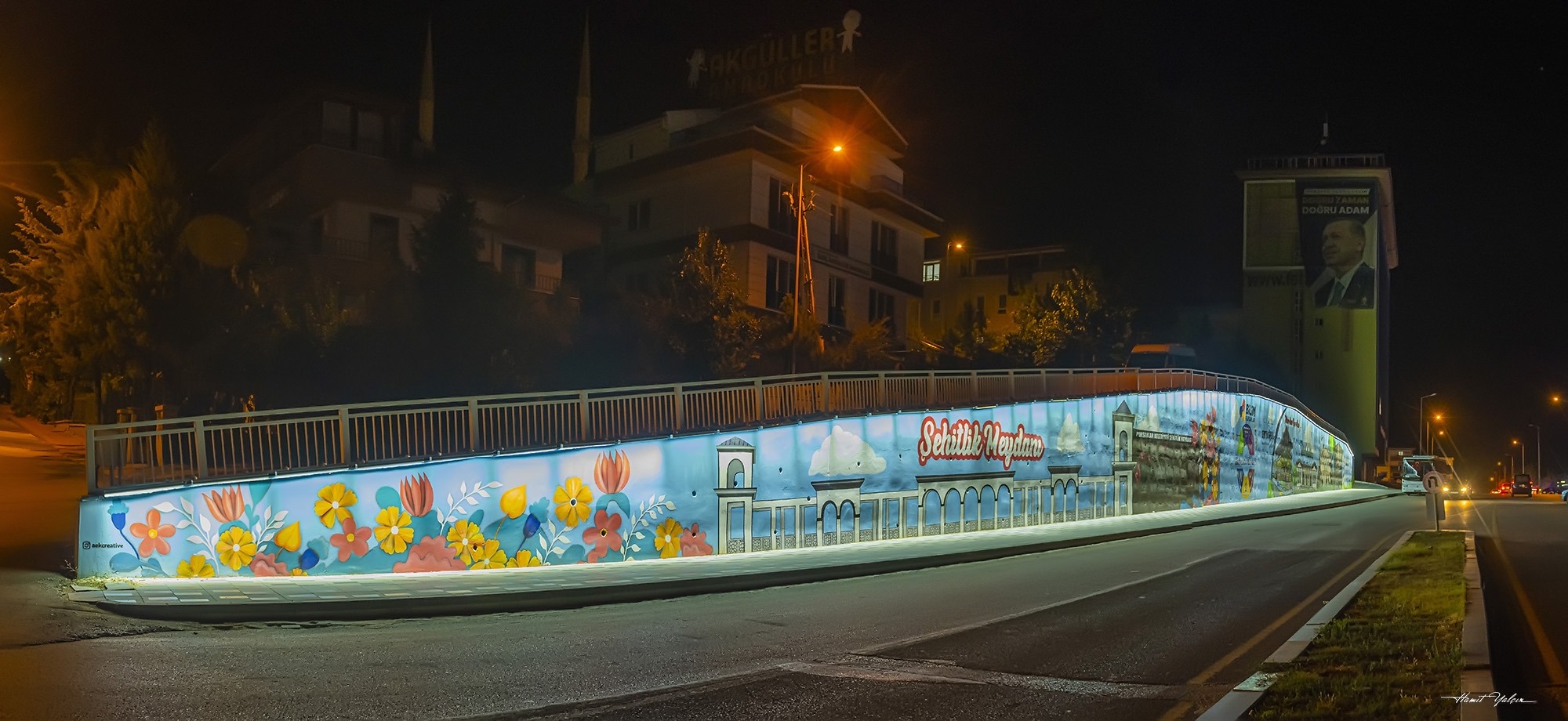 Ankara’da sanatsal ve kültürel çalışmalara öncülük eden Pursaklar Belediyesi, görünüm açısından soğuk ve bakımsız olan gri duvarları adeta birer sanat galerisine dönüştürdü. İlçeye kazandırılan hizmet alanları başta olmak üzere profesyonel ressamların ellerinden çıkan sanatsal fotoğraf uygulamaları ve dikey düzlemde topraksız olarak canlılığını koruyan dikey bahçelerle duvarlar görsel bir zenginlik kazandı.