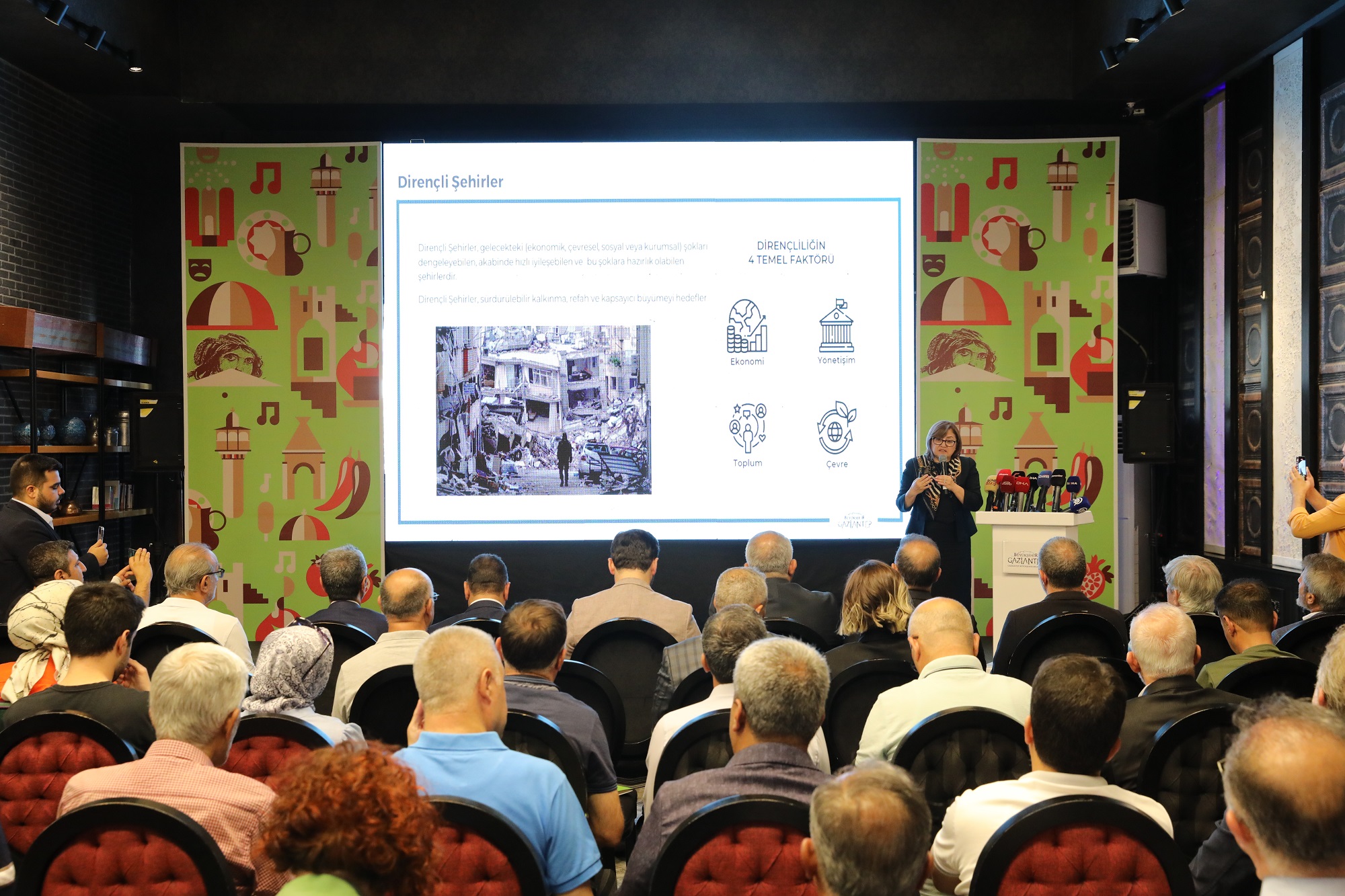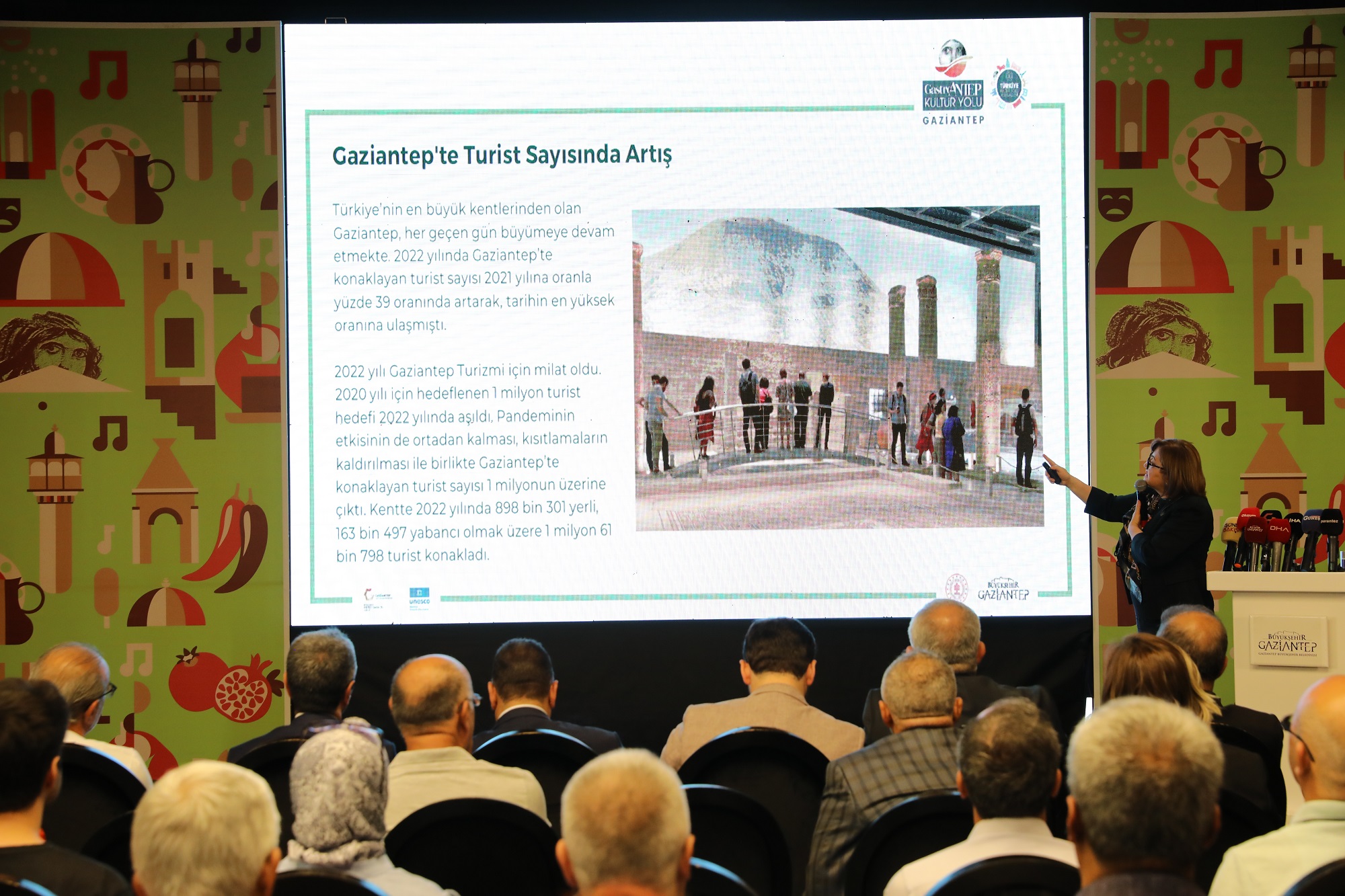 Mutfak Sanatları Merkezi’nde (MSM) yapılan toplantıda Büyükşehir Belediye Başkanı Fatma Şahin’in yaptığı sunumda güçlü ve dirençli şehir Gaziantep ile ekonomik, çevresel, sosyal ve kurumsal çalışmalarına değinildi. Sunumda Gaziantep mutfağını eşsiz lezzetlerini ulusal ve uluslararası arenada tanıtılacak olan festivallerin çalışmaları hakkında bilgiler verildi.