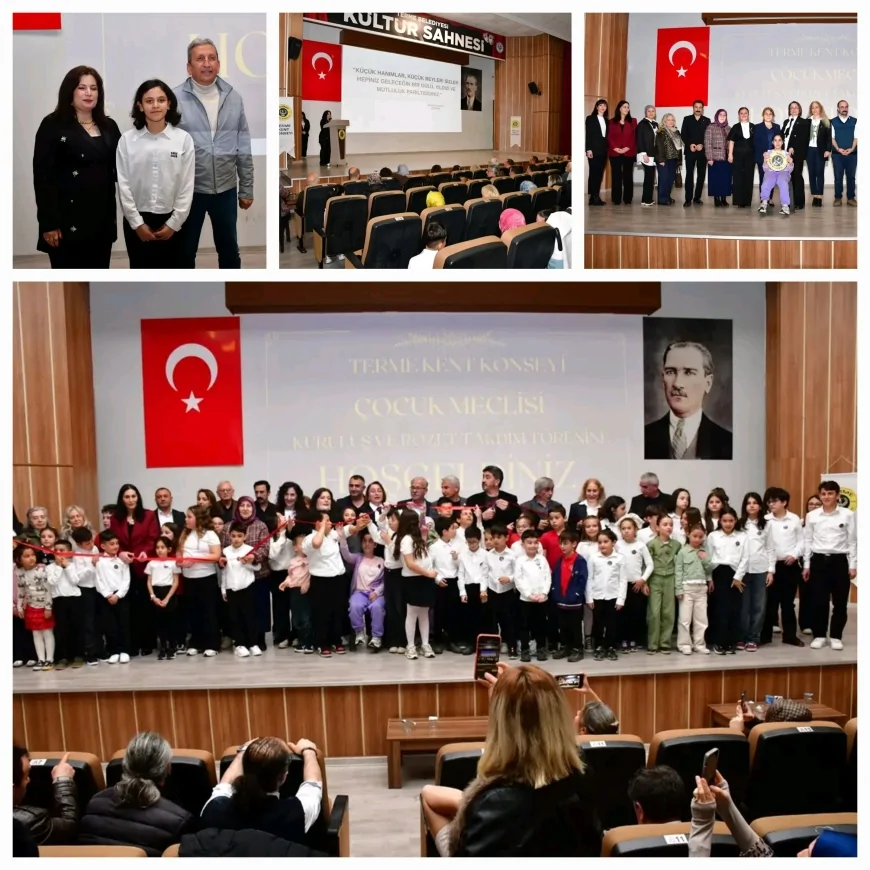 Samsun’un Terme ilçesinde Kent Konseyi öncülüğünde kurulan Çocuk Meclisi, 23 Nisan öncesinde düzenlenen törenle resmen hayata geçirildi. 50 çocuğun rozet takarak göreve başladığı programda konuşan Terme TSO Başkanı Ahmet Ekmekçi, çocukların kent yönetiminde söz sahibi olmasının önemine dikkat çekti.