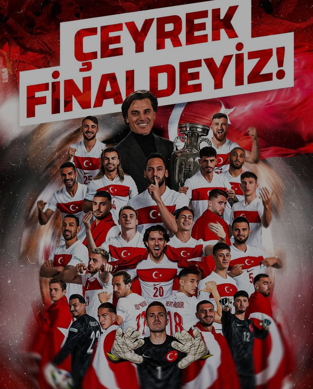 A Millî Takımımız, 2024 Avrupa Futbol Şampiyonası (EURO 2024) Son 16 Turu müsabakasında karşılaştığı Avusturya'yı 2-1 mağlup ederek 2000 ve 2008 yıllarının ardından bu turnuvada 3. kez çeyrek finale yükseldi. Euro 2024 Futbol turnuvası son 16 müsabakasında Avusturya'yı Milli Futbolcumuz "MERİH DEMİRAL" in 1. ve 59. Dakikada attığı kafa golleriyle 2 -1 galip gelerek adını çeyrek finale yazdırdı. Euro 2008 den sonra İkinci kez çeyrek finale kalan millilerin çeyrek finaldeki rakibi HOLLANDA oldu. Maç sonrası büyük sevinç yaşayan milli takım oyuncu ve teknik ekibi, orta sahada bir araya gelerek önce rakip takım Avusturyalı milli futbolcuların soyunma odasına yönelmesini alkışlarla uğurlarken, Merih DEMİRAL in önderliğinde Üçlü çektirerek hem tribünleri hem ekranları başındaki milyonlarca taraftarı sevince boğdu. 90 dakika sonrası maçın oyuncusu 2 Gol atan Merih DEMİRAL, bu golüyle Ay-Yıldızlılarımıza galibiyeti ve çeyrek final biletini garantilemiş oldu. Rakibimiz Avusturya'nın golünü ise 66. dakikada Michael Gregoritsch attı. Leipzig Stadyumu'nda oynanan müsabakayı T.C. Gençlik ve Spor Bakanı Osman Aşkın Bak, TFF Başkanı Mehmet Büyükekşi ve eşi Zehra Büyükekşi ile TFF Yönetim Kurulu türbünde izlediler. Milli Takımımızın Çeyrek finaldeki rakibi Hollanda olacak. Avusturya karşısında galibiyete uzanarak son 16 turunu geçen Millîlerimiz, günün diğer maçında Münih Futbol Arena'da karşılaştığı Romanya'yı 3-0 mağlup eden Hollanda ile 6 Temmuz 2024 Cumartesi günü TSİ 22.00'de Berlin Olimpiyat Stadyumu'nda çeyrek final mücadelesine çıkacak.