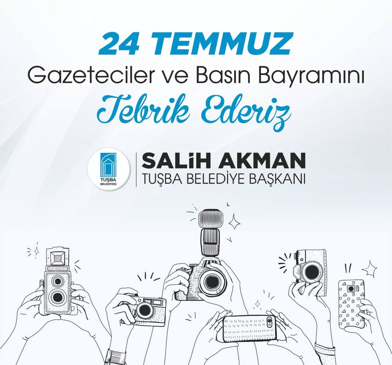 Demokratik hayatımızın vazgeçilmez unsurlarından biri olan haber alma ve yayma özgürlüğünün en etkili aracı olan basının, demokrasinin yaşamasını ve gelişmesini sağlayan kurumların başında geldiğini dile getiren Başkan Salih Akman, “Bu duygu ve düşüncelerle gece gündüz büyük fedakarlık ve özveriyle görev yapan yerel gazete, dergi, radyo, internet haber siteleri, haber ajansları temsilcileri olmak üzere bütün basın mensuplarının 24 Temmuz ‘Gazeteciler ve Basın Bayramı’nı tebrik ediyor, görevlerini yerine getirirken hayatını kaybeden değerli basın çalışanlarını da rahmetle anıyorum” şeklinde konuştu.