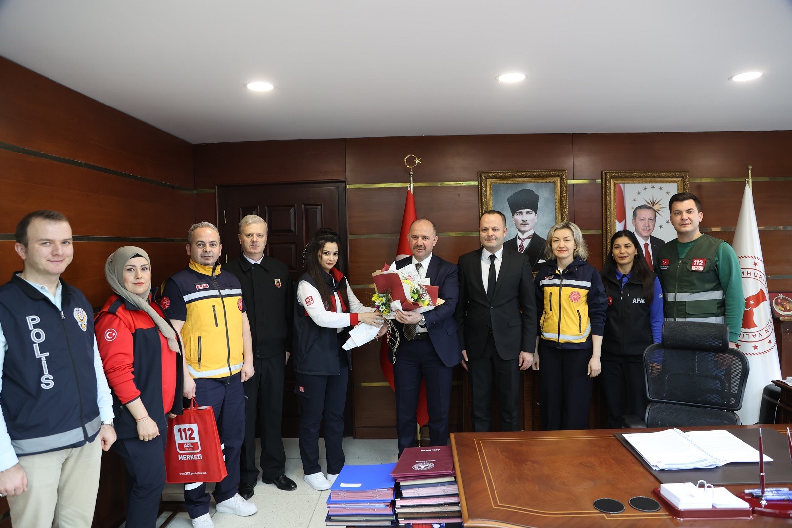 112 Acil Çağrı Merkezi heyeti de kabulden dolayı Vali Serdengeçti’ye teşekkür ederek çiçek takdim etti.